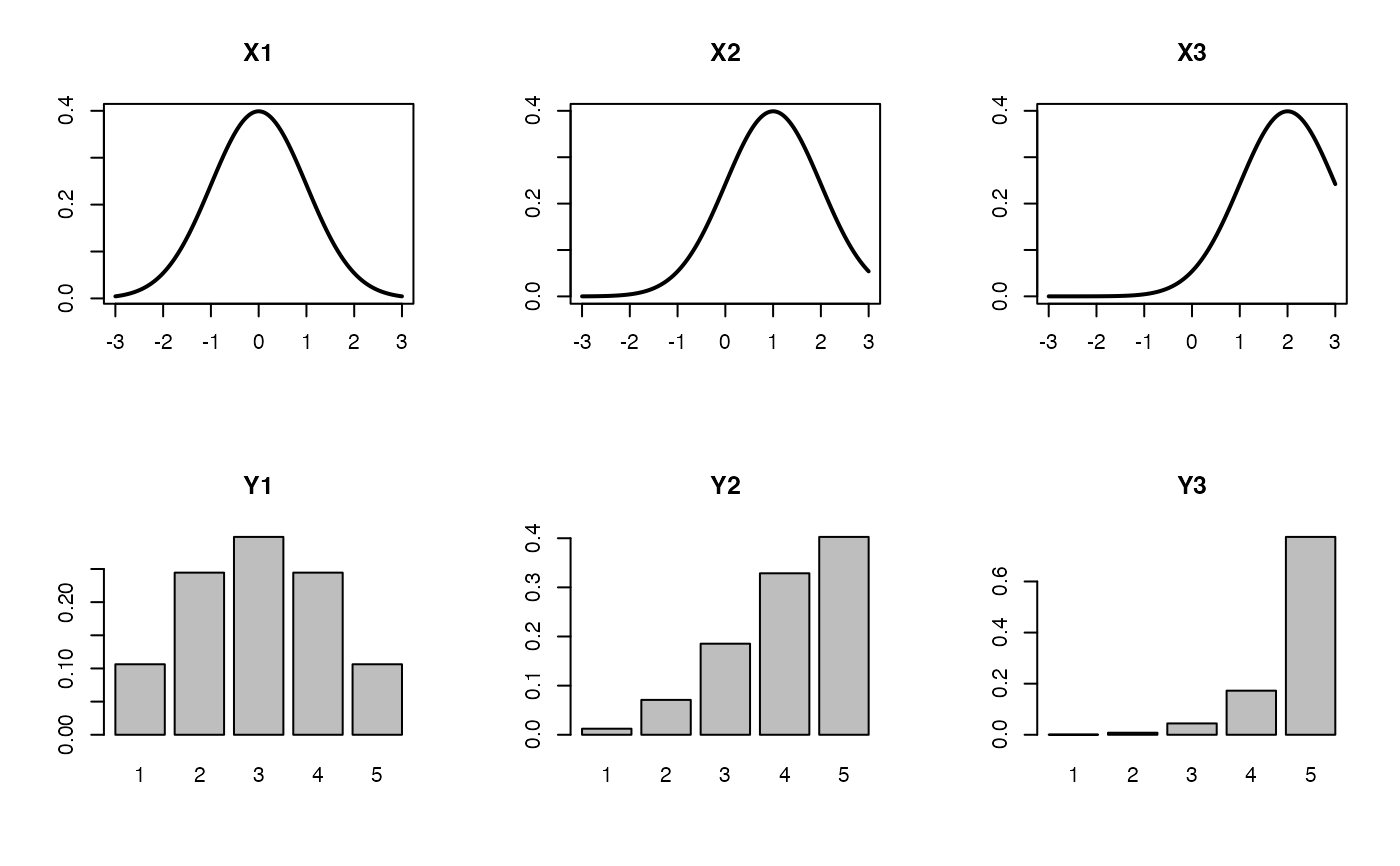 plot_likert_transform(n_items, n_levels, mean = 0, sd = 1, skew = 0)